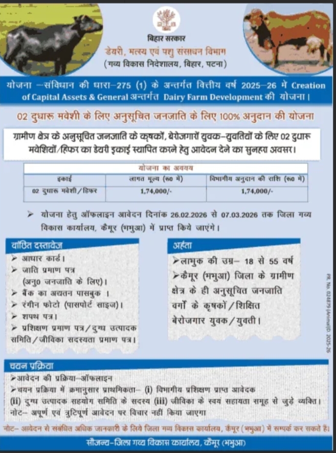 | योजना का नाम | Bihar Dairy Farm Yojana 2026 |