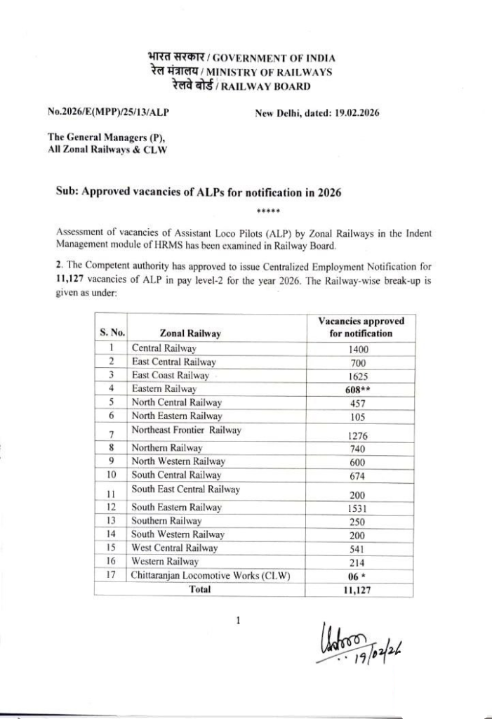 RRB ALP NEW Recruitment 2026 में पदों का वितरण रेलवे ज़ोन के अनुसार किया जाएगा।